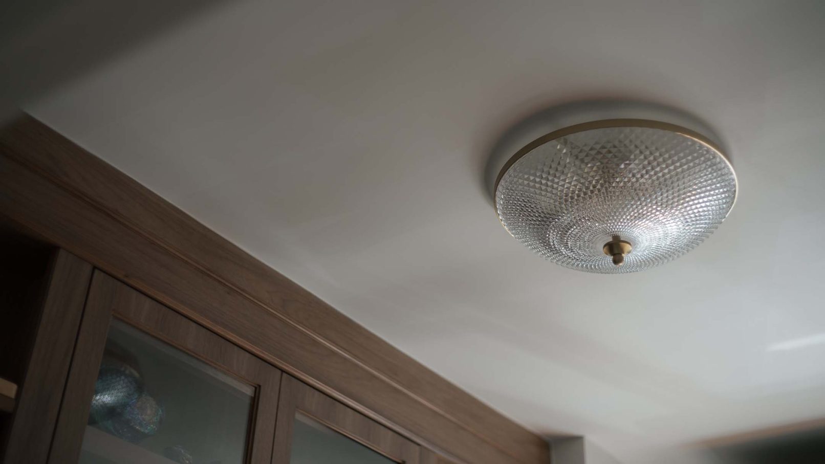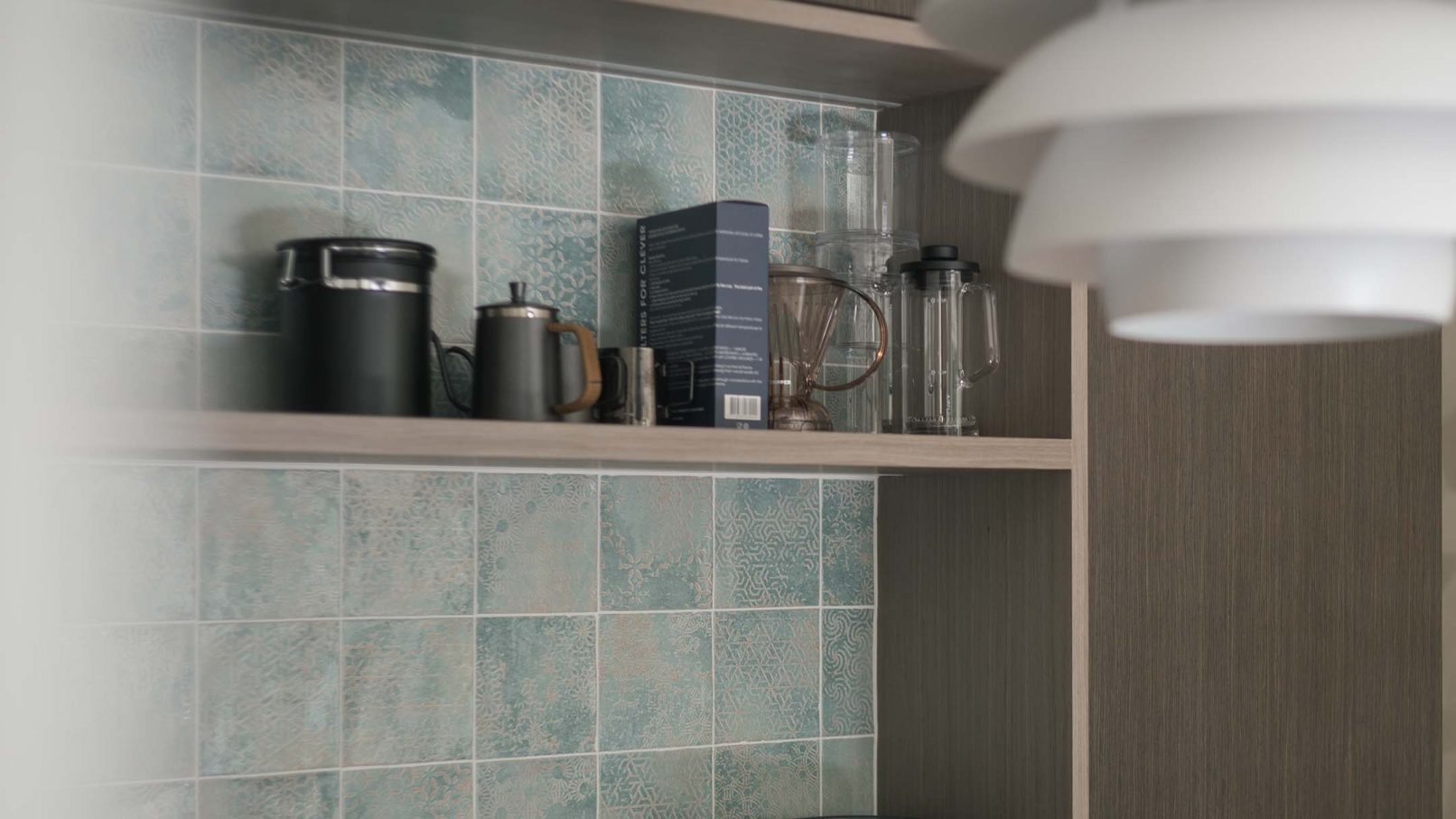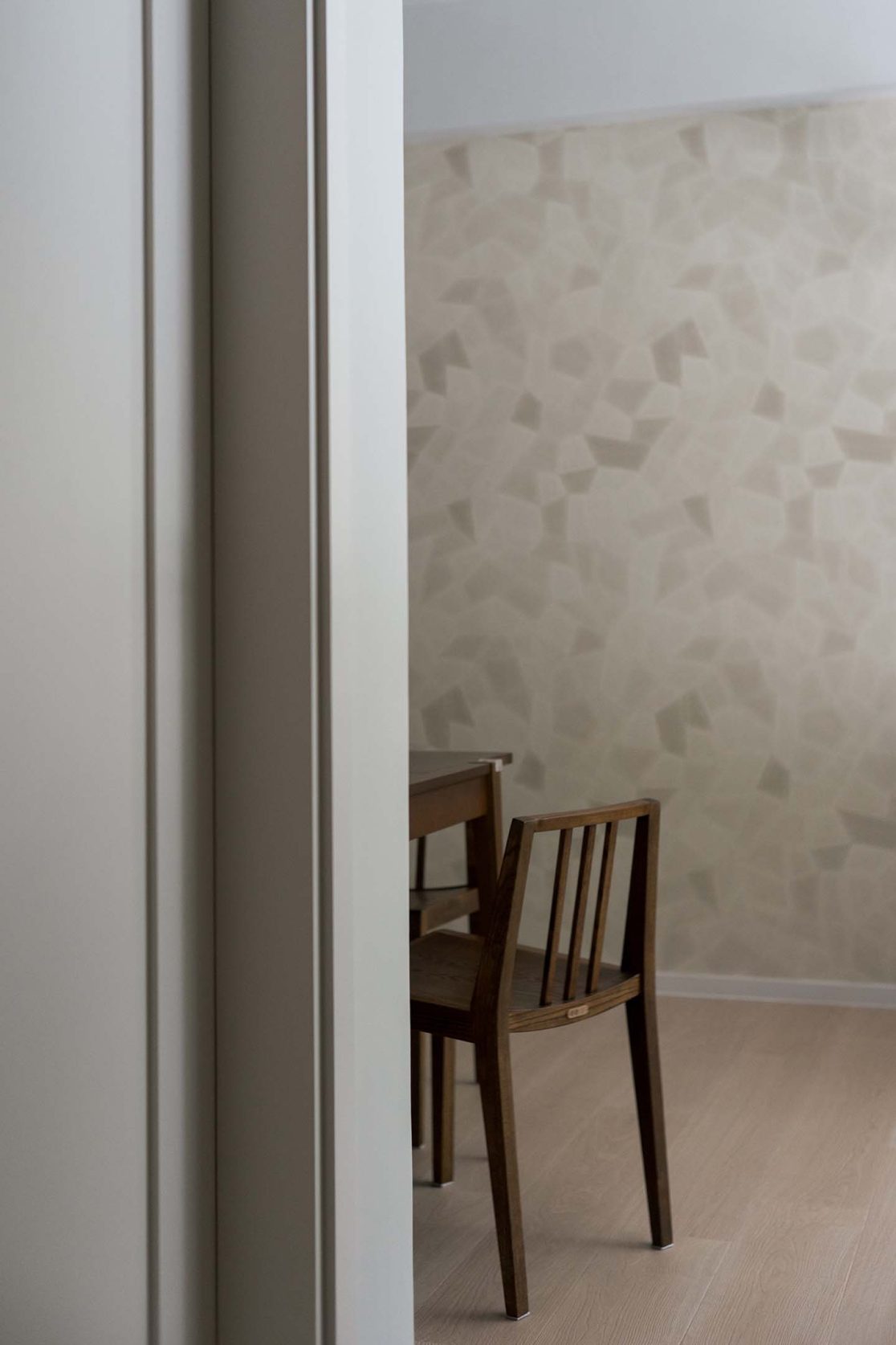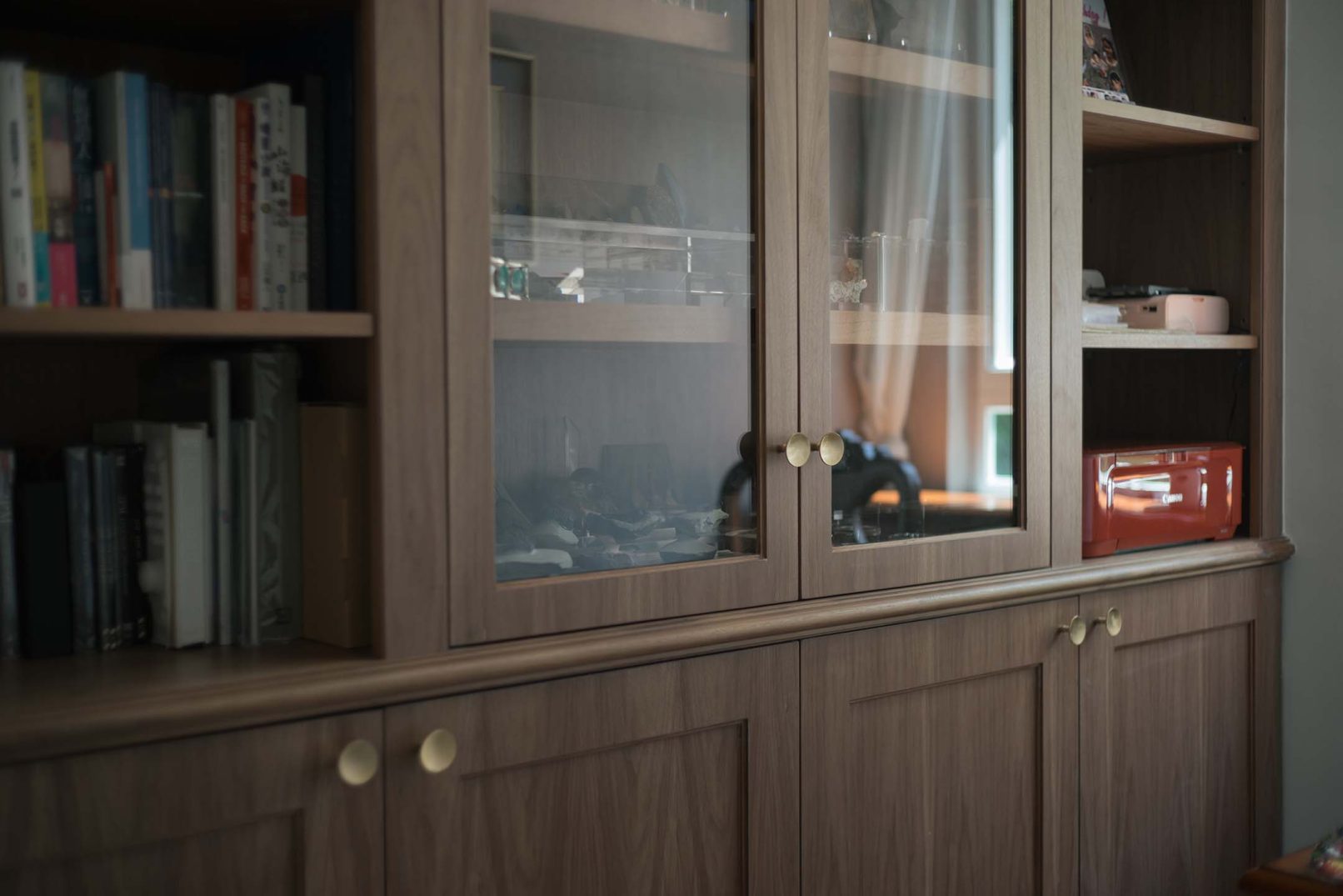 The style of interior is dominated by white main color, with modern design and natural dark wood matarials to create a cozy interior space.