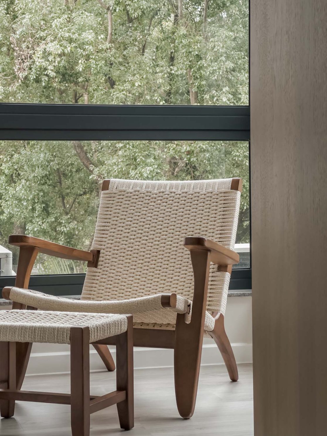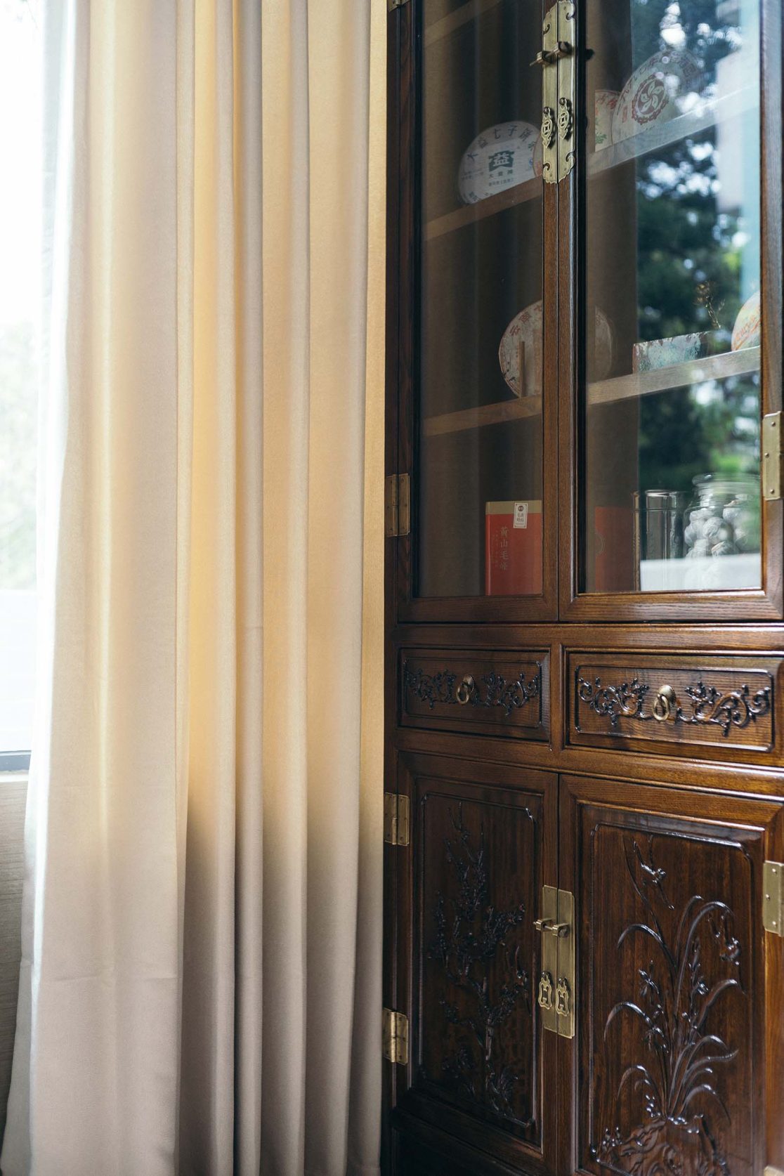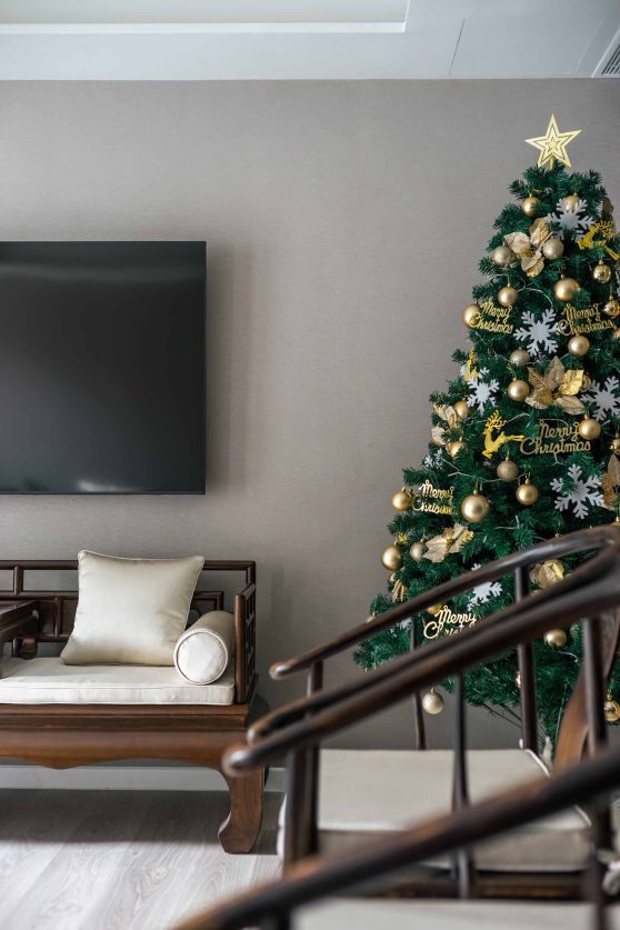 Upon entering the villa, guests are greeted by the spacious living room located on the first floor. The room’s high ceilings and expansive windows allow for an abundance of natural light, giving a sense of openness and airiness. Traditional Chinese elements such as wooden screens and calligraphy artworks blend seamlessly with modern furnishings, creating an inviting atmosphere ideal for social gatherings or quiet relaxation.